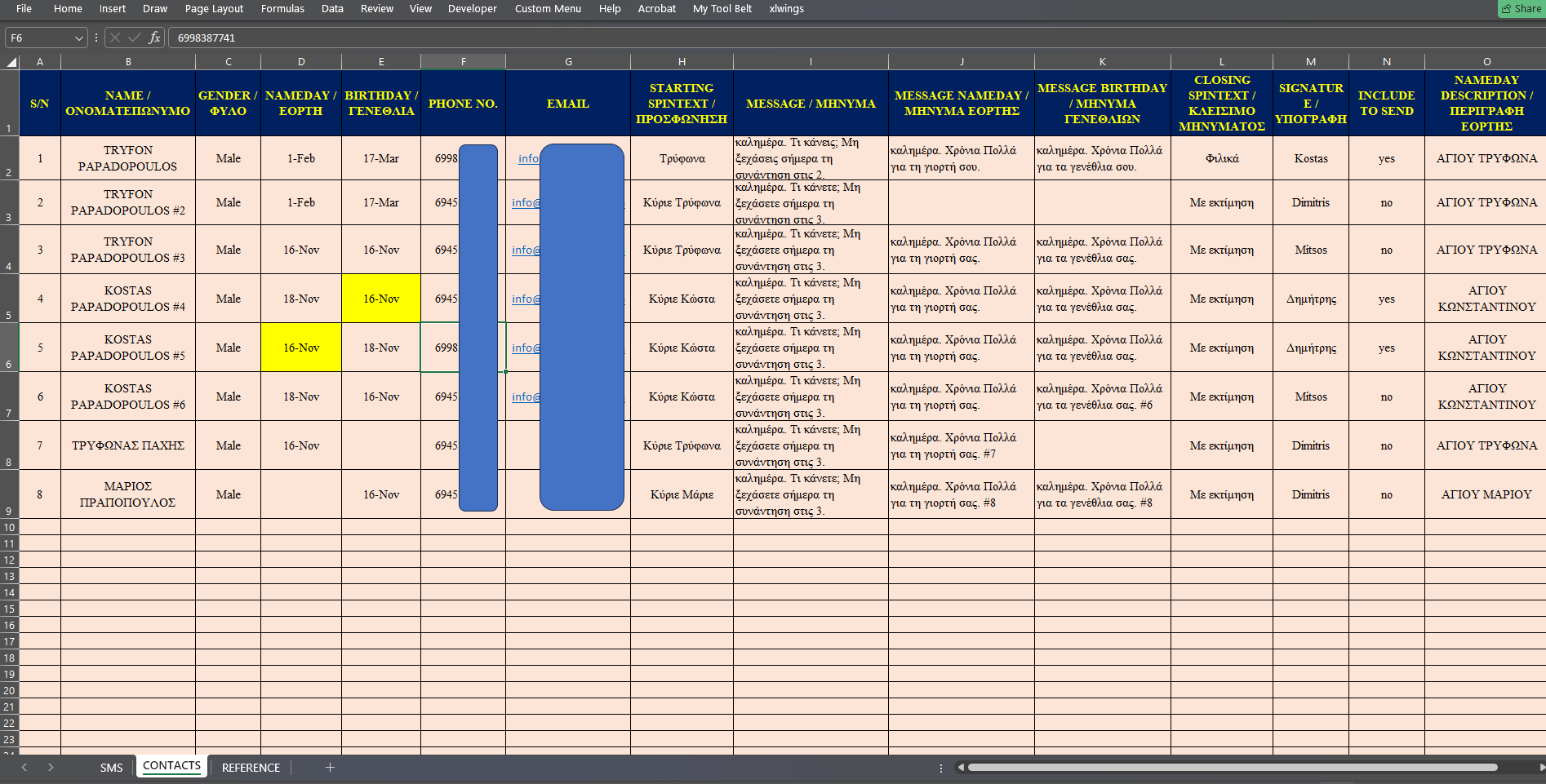 Ανάπτυξα ένα έξυπνο σύστημα στο Excel που δημιουργεί αυτόματα προσωπικά SMS για γιορτές, γενέθλια, εκδηλώσεις και υπενθυμίσεις, με χρήση VBA.