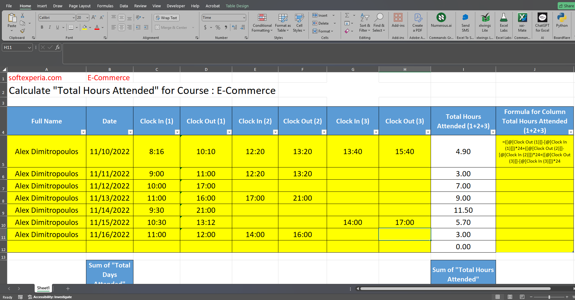 Calculation of Total Hours Attended and Total Days Attended Υπολογισμός συνολικών ωρών και συνολικών ημερών παρακολούθησης ενός προγράμματος εκπαίδευσης Facebook video Download excel file: calculate_hours_attended.xlsx #softexperia #excel_tips Views: 5 EXCEL TIPSMICROSOFT EXCEL TIPS Prev Post Υπολογισμός ηλικίας ή χρόνου υπηρεσίας σε συσσωρευμένα έτη, μήνες και ημέρες November 30, 2025 Next Post Παράγοντες που επηρεάζουν την τιμολόγηση και στρατηγικές τιμολόγησης December 2, 2025 Related Posts - Σχετικά Άρθρα Παράγοντες που επηρεάζουν την τιμολόγηση και στρατηγικές τιμολόγησης December 2, 2025 Υπολογισμός ηλικίας ή χρόνου υπηρεσίας σε συσσωρευμένα έτη, μήνες και ημέρες November 30, 2025 In theory and in reality November 30, 2025 Comments are closed.