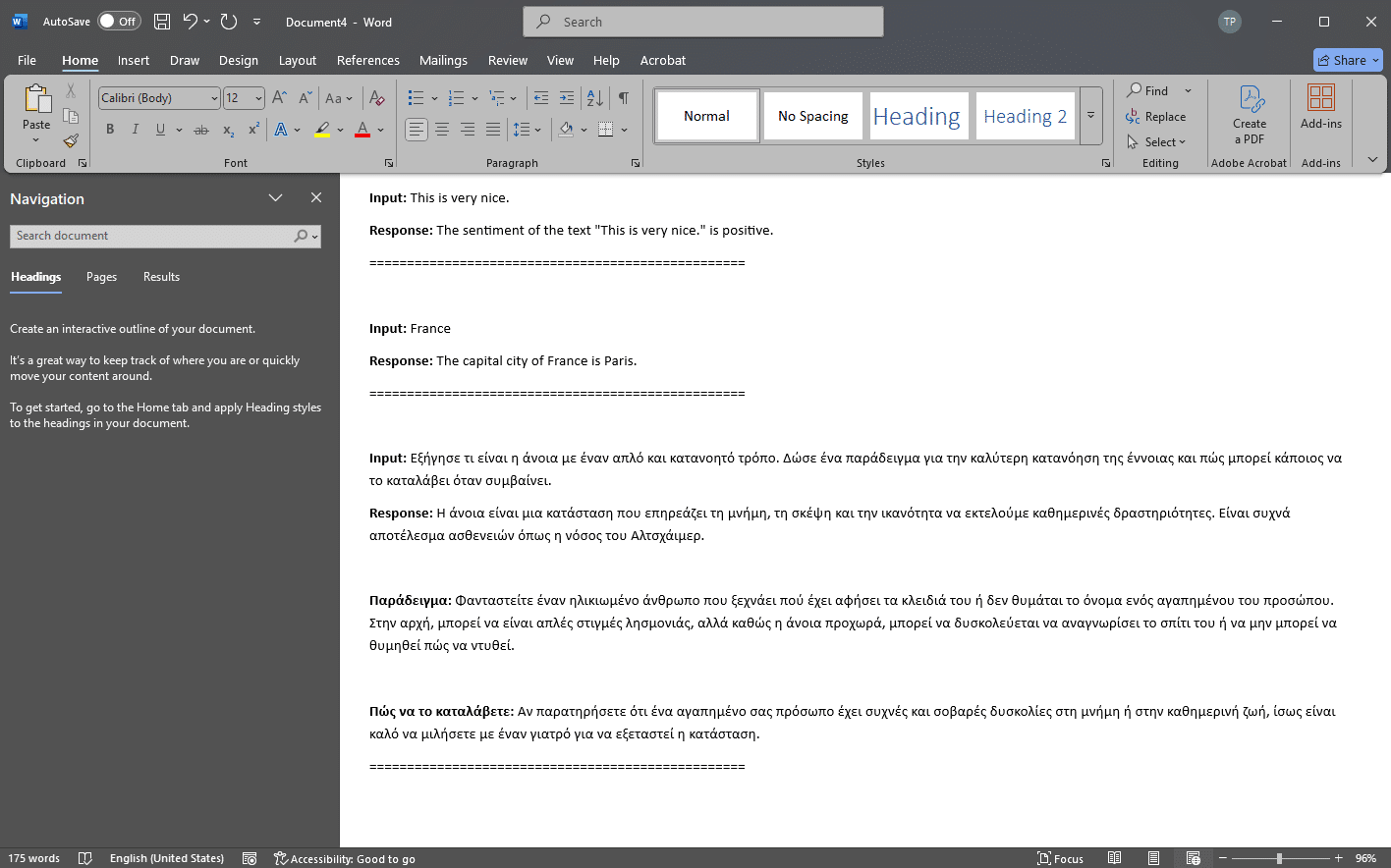 Με λίγα λόγια: η C έχει τα κείμενα εισόδου, η D παίρνει την απάντηση του AI, η G ελέγχει ποιες απαντήσεις αντιγράφονται στη F για αναθεώρηση, και η H ελέγχει ποια ζεύγη Είσοδος/Απάντηση εξάγονται σε ένα μορφοποιημένο έγγραφο Word.