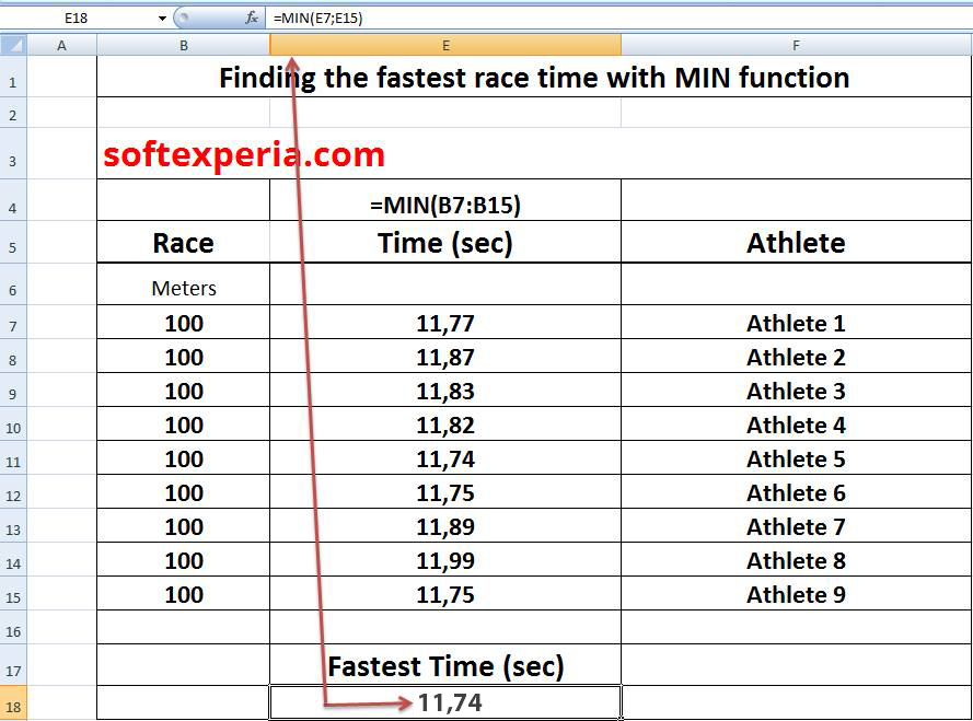 Finding the fastest race time with MIN function