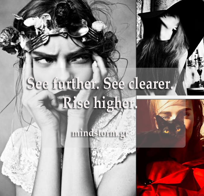 • The intense gaze + headpiece suggests perception, insight, and mental focus → “See further / See clearer” lands intuitively.