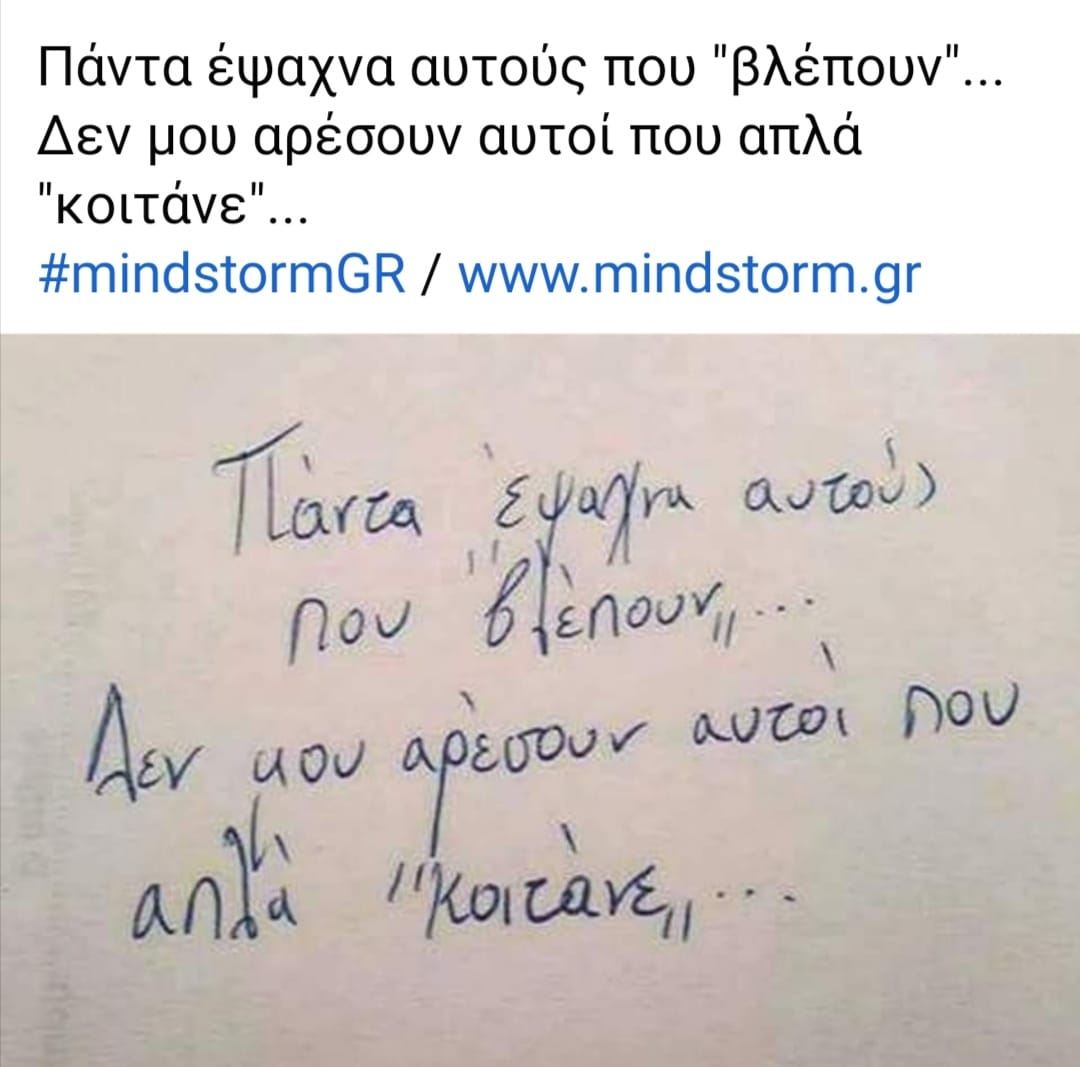Πάντα έψαχνα αυτούς που “βλέπουν”. Δεν μου αρέσουν αυτοί που απλά “κοιτάνε”.
