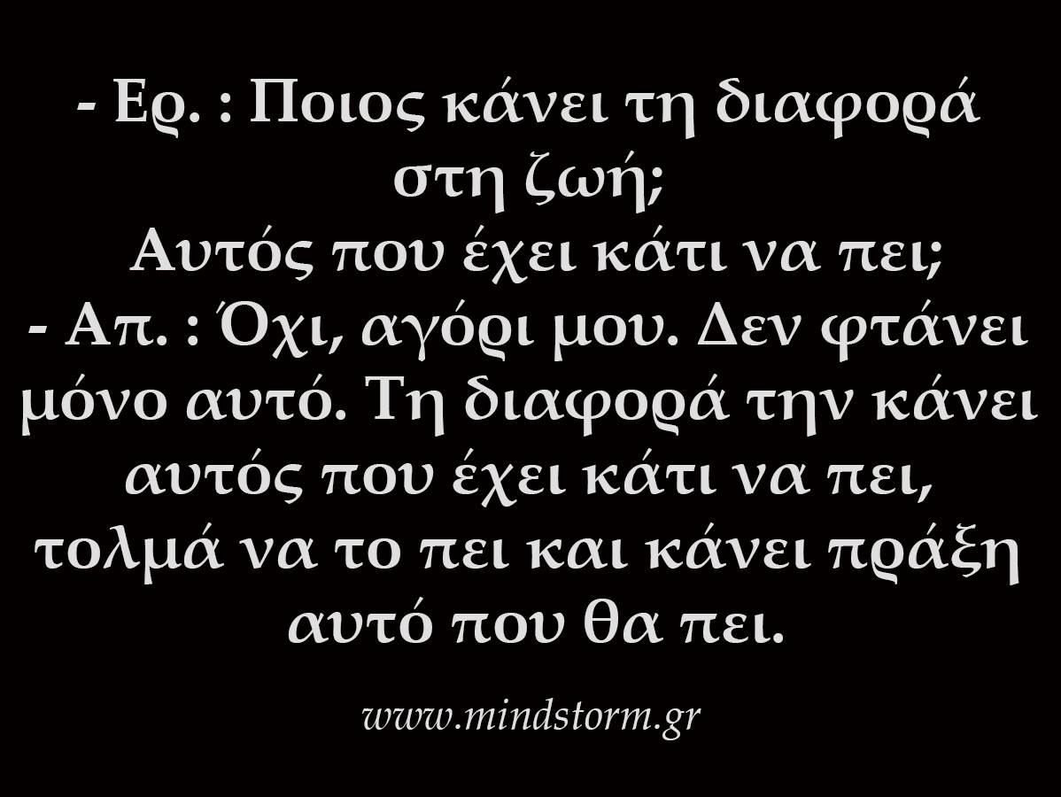 – Απ. : Όχι, αγόρι μου. Δεν φτάνει μόνο αυτό. Τη διαφορά την κάνει αυτός που έχει κάτι να πει, τολμά να το πει και κάνει πράξη αυτό που θα πει.