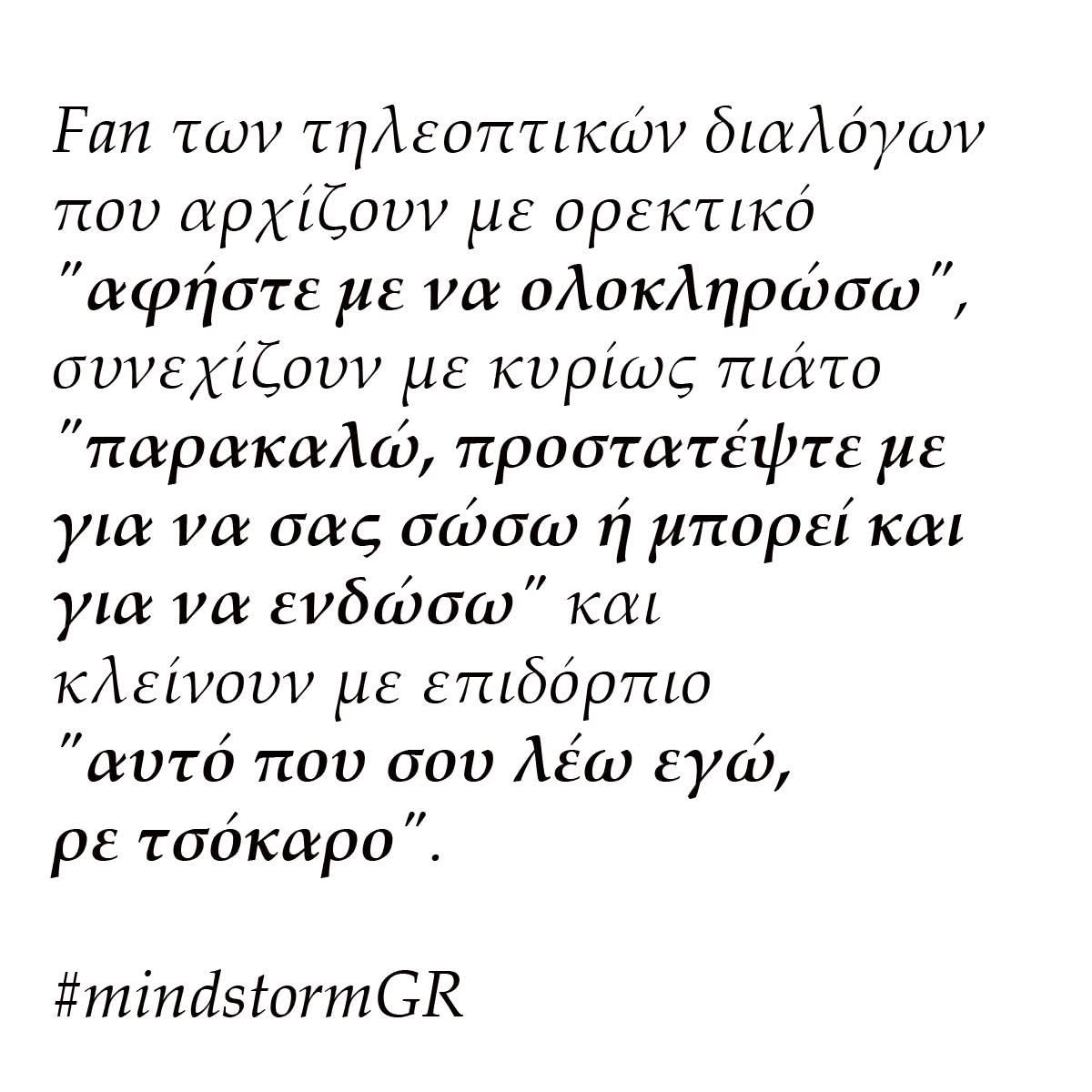 Είμαι fan των τηλεοπτικών διαλόγων που αρχίζουν με ορεκτικό “αφήστε με να ολοκληρώσω“,